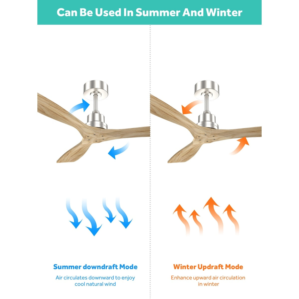 Ventilatore da soffitto moderno da 52 pollici in legno massello/ABS con telecomando (senza luce), 6 velocità, flusso d'aria reversibile.