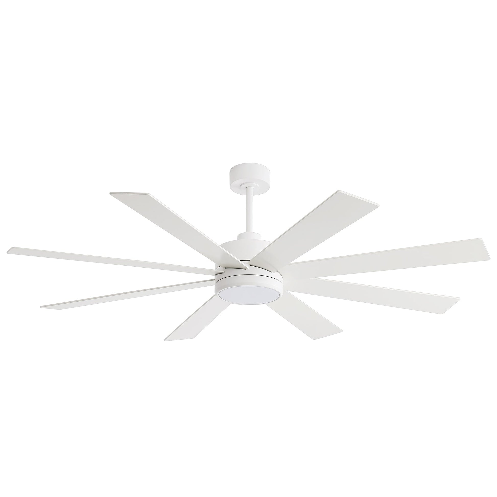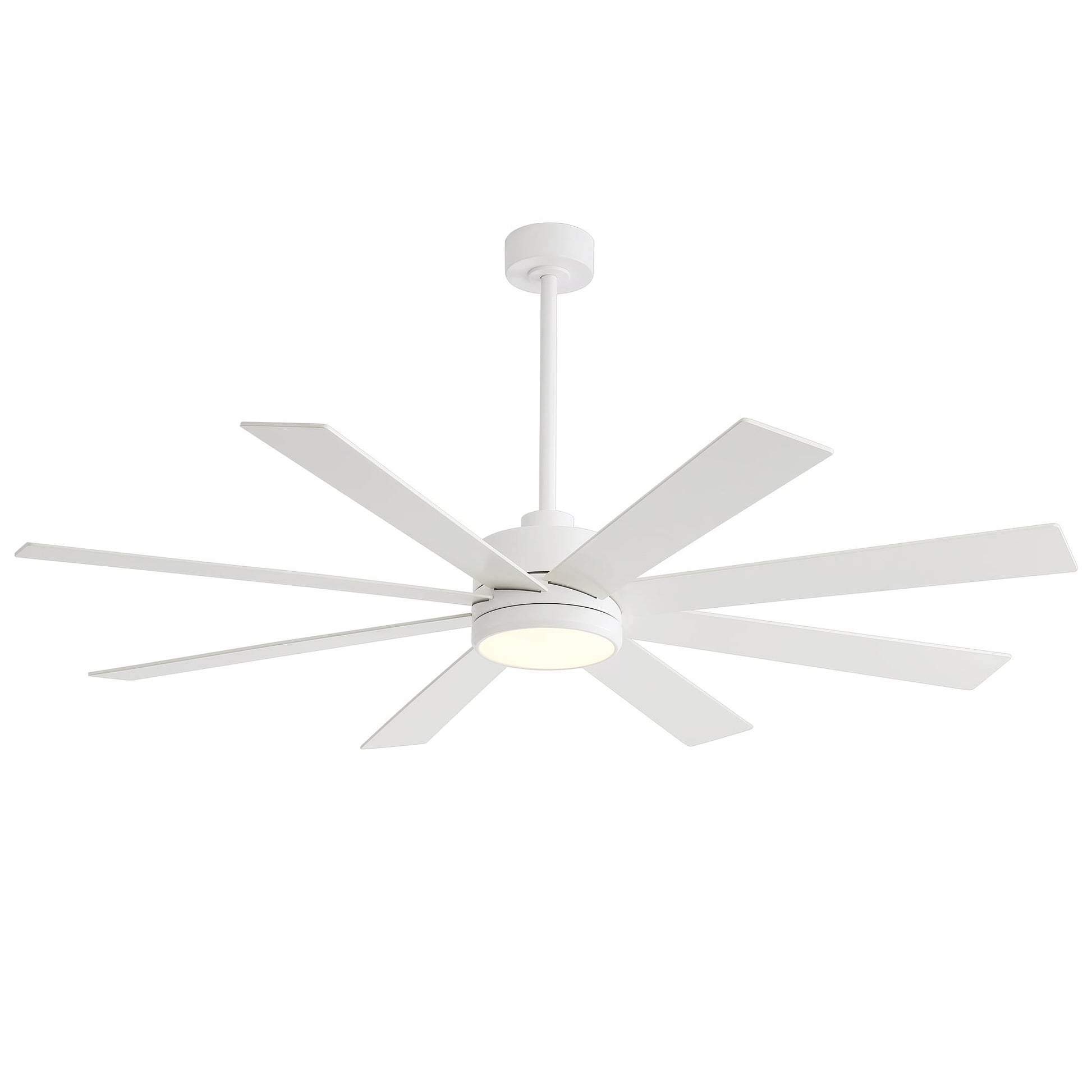 Un design moderno che si presta bene agli ambienti interni, genera un notevole flusso d'aria. È un ventilatore molto grande con 8 pale e un'apertura di 65 pollici. La struttura del ventilatore da soffitto, adatta ad ambienti asciutti, è realizzata con pannelli di compensato e metallo resistenti. Le 8 eleganti pale, disponibili in finitura bianca, sono reversibili e rimovibili. È dotato di un potente motore DC che funziona in modo fluido e silenzioso, con un'efficienza del 70% superiore rispetto ai motori AC. Il comodo sistema a 6 velocità può essere controllato localmente utilizzando il telecomando incluso.