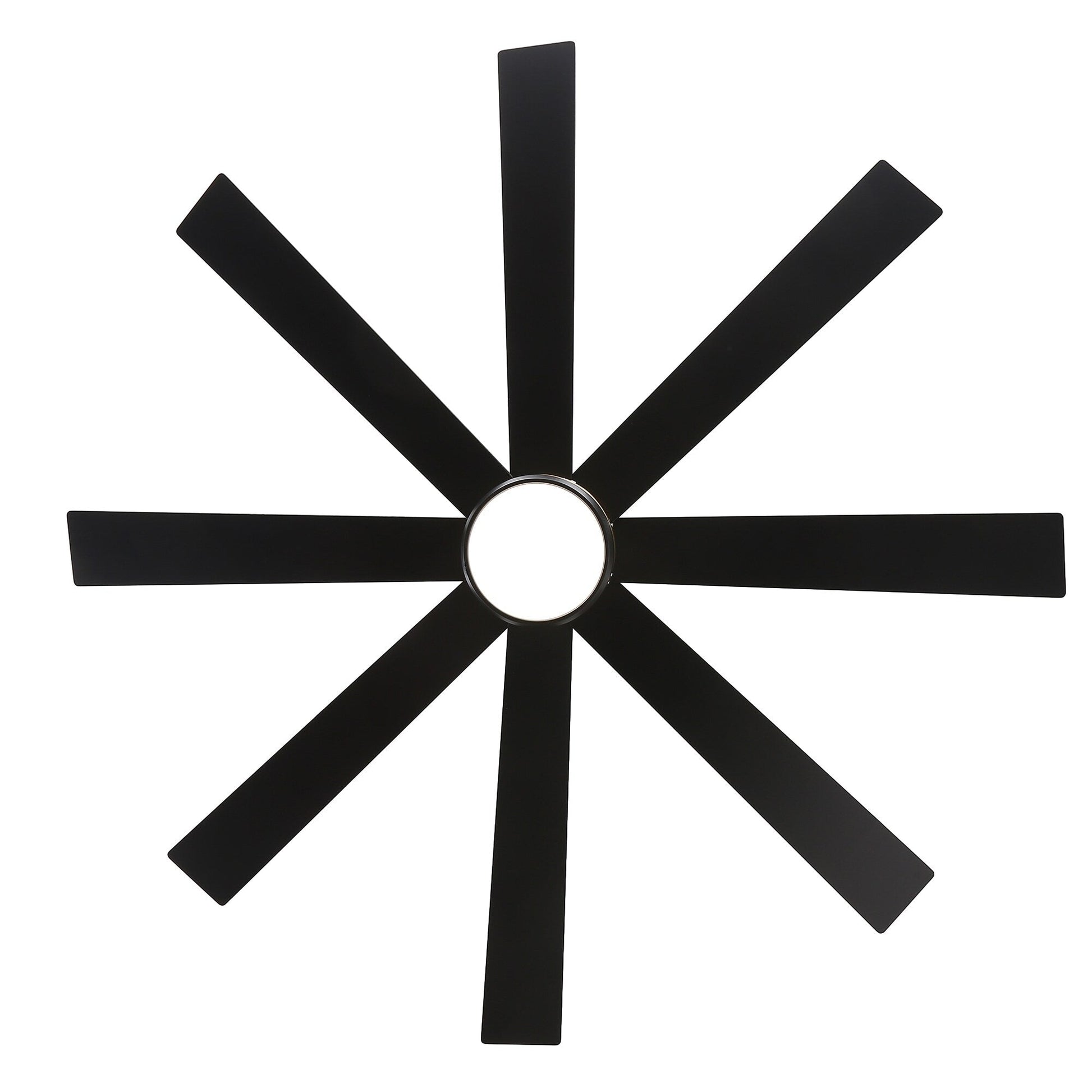 Ventilatore da soffitto a LED nero da 65 pollici con 8 pale, luce e telecomando.
