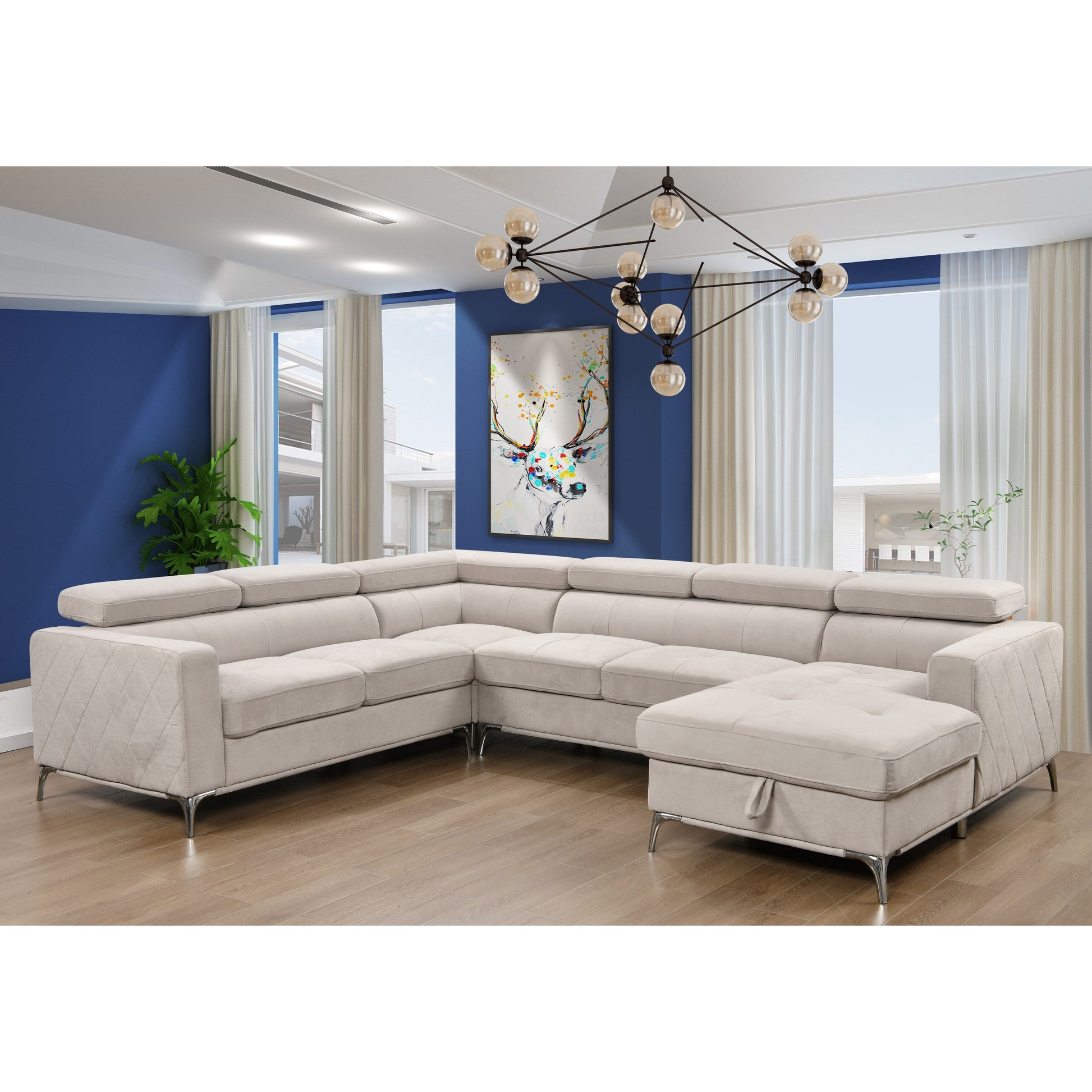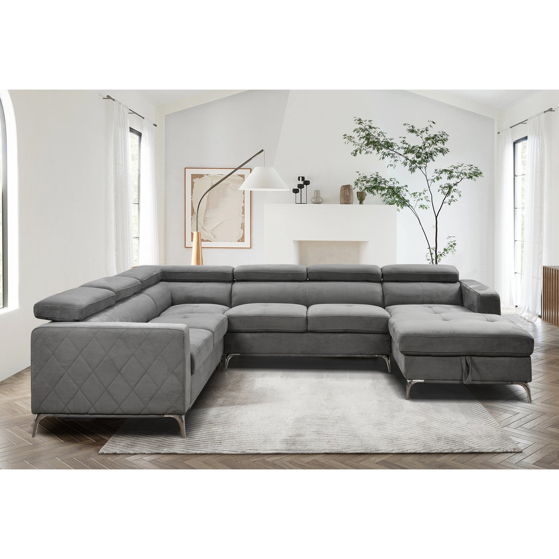 Roomfitters 122 Divano componibile extra large con chaise longue e vano portaoggetti, divano a forma di U contemporaneo a 7 posti.