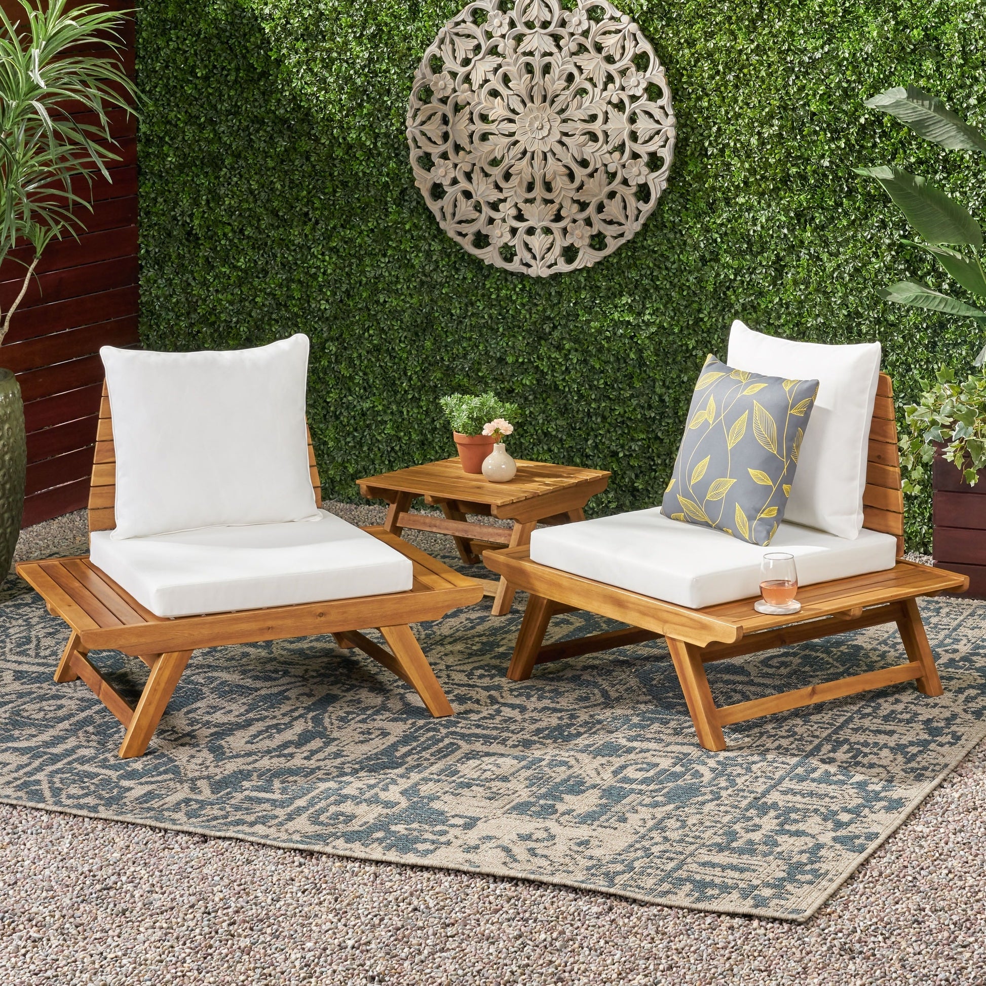 Godetevi il vostro spazio esterno con questo set di due sedie in legno di acacia della collezione Christopher Knight Home. La struttura in legno di acacia a doghe presenta una seduta extra larga che si estende oltre il cuscino, formando un comodo tavolino integrato. I cuscini in poliestere resistenti all'acqua sono rimovibili per una facile pulizia.