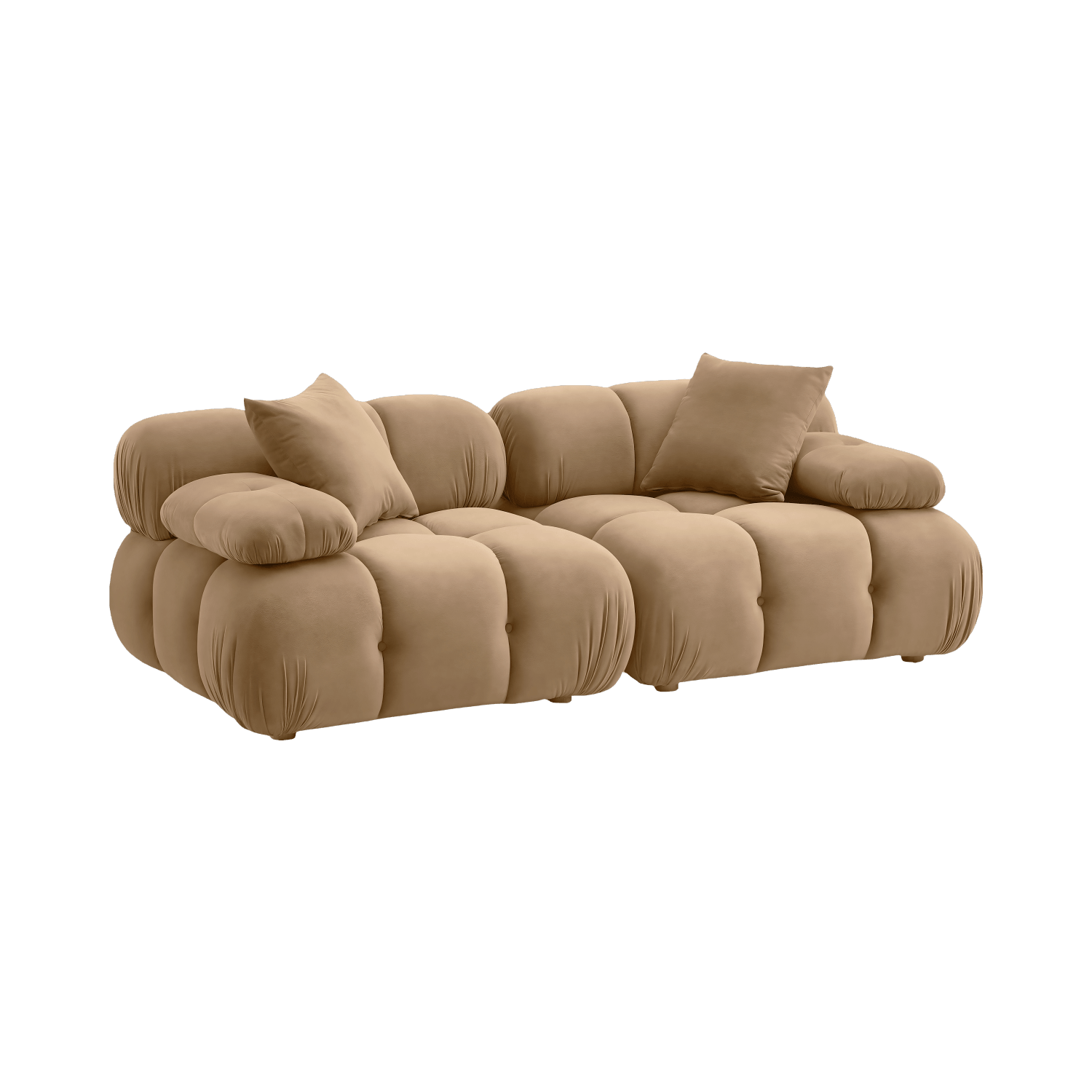 Il divano a due posti Solace in velluto color caffè latte offre un comfort lussuoso e un design versatile alla tua casa. Il suo tessuto in velluto ad alte prestazioni garantisce resistenza e al contempo esalta l'eleganza del tuo spazio.