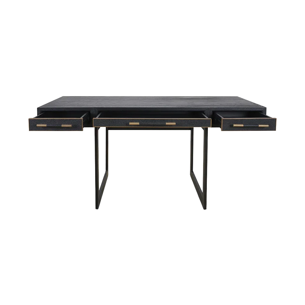 La scrivania Midnight Office è una soluzione elegante e moderna per lo spazio di lavoro, caratterizzata da una ricca finitura nera con maniglie dei cassetti con dettagli dorati. Questa elegante scrivania offre tre ampi cassetti, perfetti per organizzare gli oggetti essenziali per l'ufficio, mentre il suo design minimalista e la base aperta aggiungono un tocco contemporaneo a qualsiasi casa o ufficio professionale.