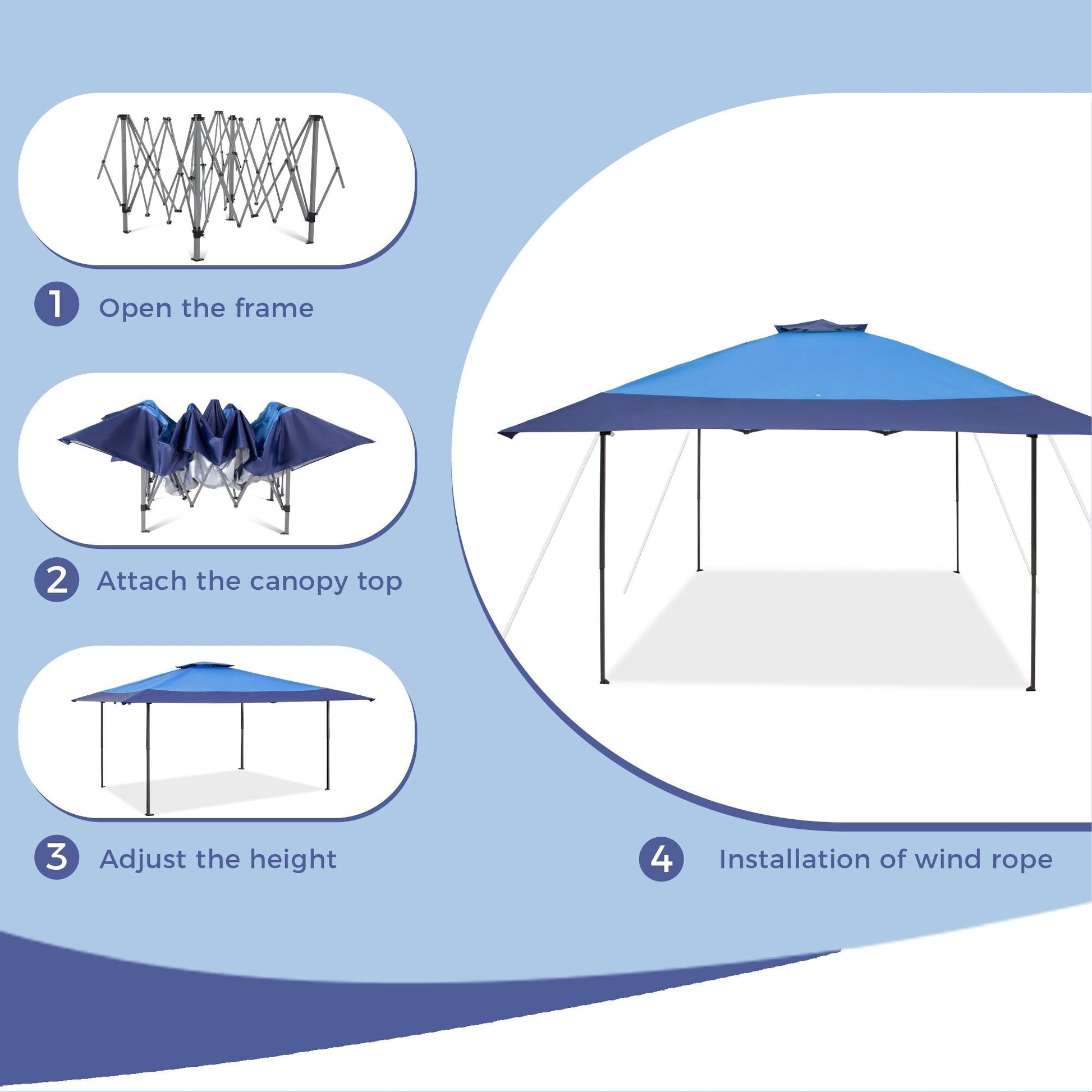 【3 altezze disponibili】 : Dotato di pulsanti anti-pinzamento su ogni gamba. Regola semplicemente la copertura desiderata con il pulsante. La struttura in acciaio verniciato a polvere offre la massima resistenza e durata.