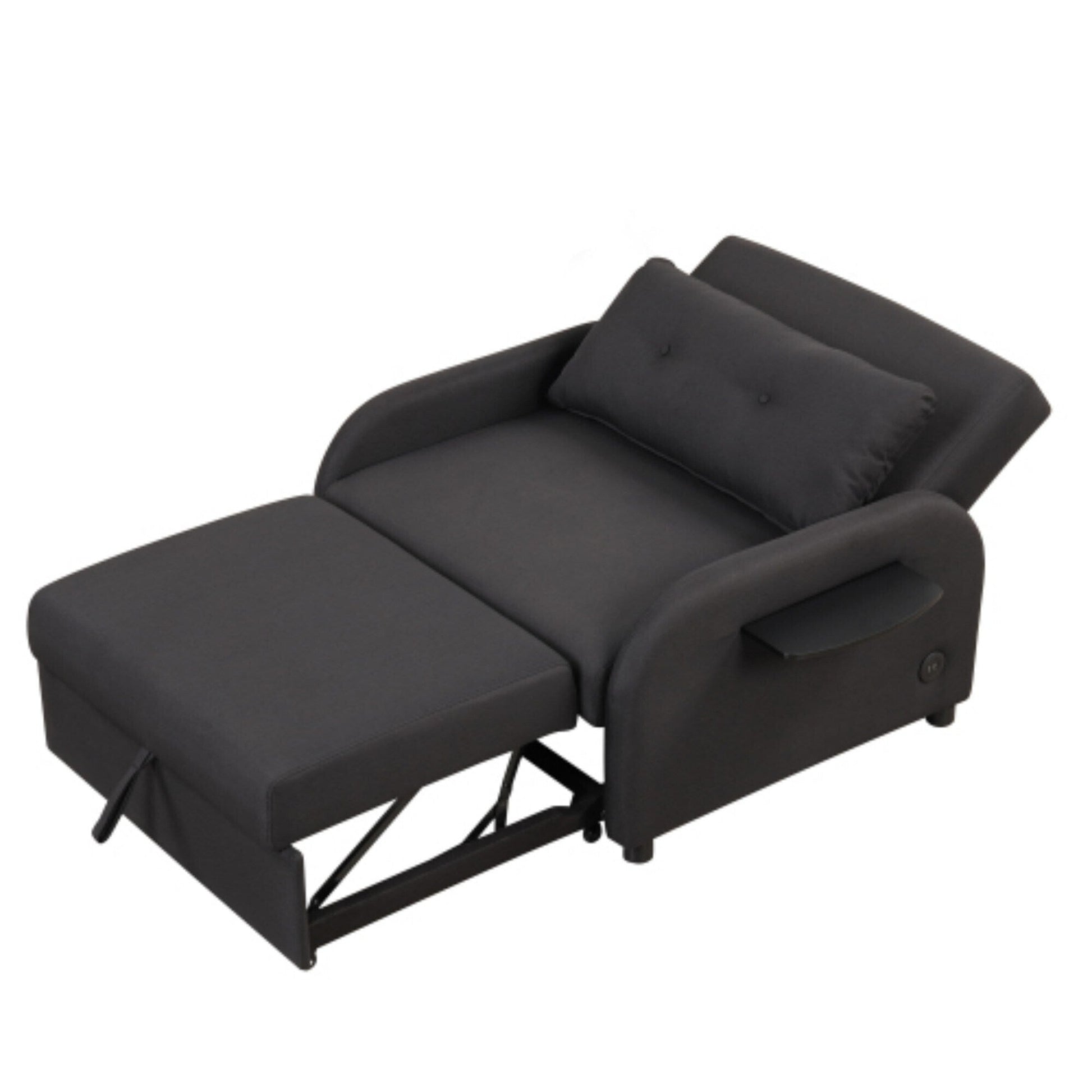 Massimizzate comfort e funzionalità con questo versatile divano letto estraibile 3-in-1. Perfetto per spazi piccoli, si trasforma facilmente da un elegante divano a un comodo letto per gli ospiti, offrendo una soluzione pratica ed elegante per la vostra casa. Dotato di un tavolino laterale ribaltabile e di due porte USB su ciascun lato, questo divano letto consente di ricaricare comodamente i dispositivi mentre vi rilassate. Lo schienale regolabile del divano offre tre diverse angolazioni di reclinazione, mentre i cuscini mobili, rivestiti in morbida stoffa di lino, garantiscono un comfort ottimale. Con un'imbottitura in spugna elastica ad alta densità e una robusta struttura in ferro, questo mobile è progettato per garantire un comfort duraturo. Disponibile in tre eleganti colori - Grigio, Nero e Beige - questo divano letto estraibile si adatta facilmente a qualsiasi ambiente.
