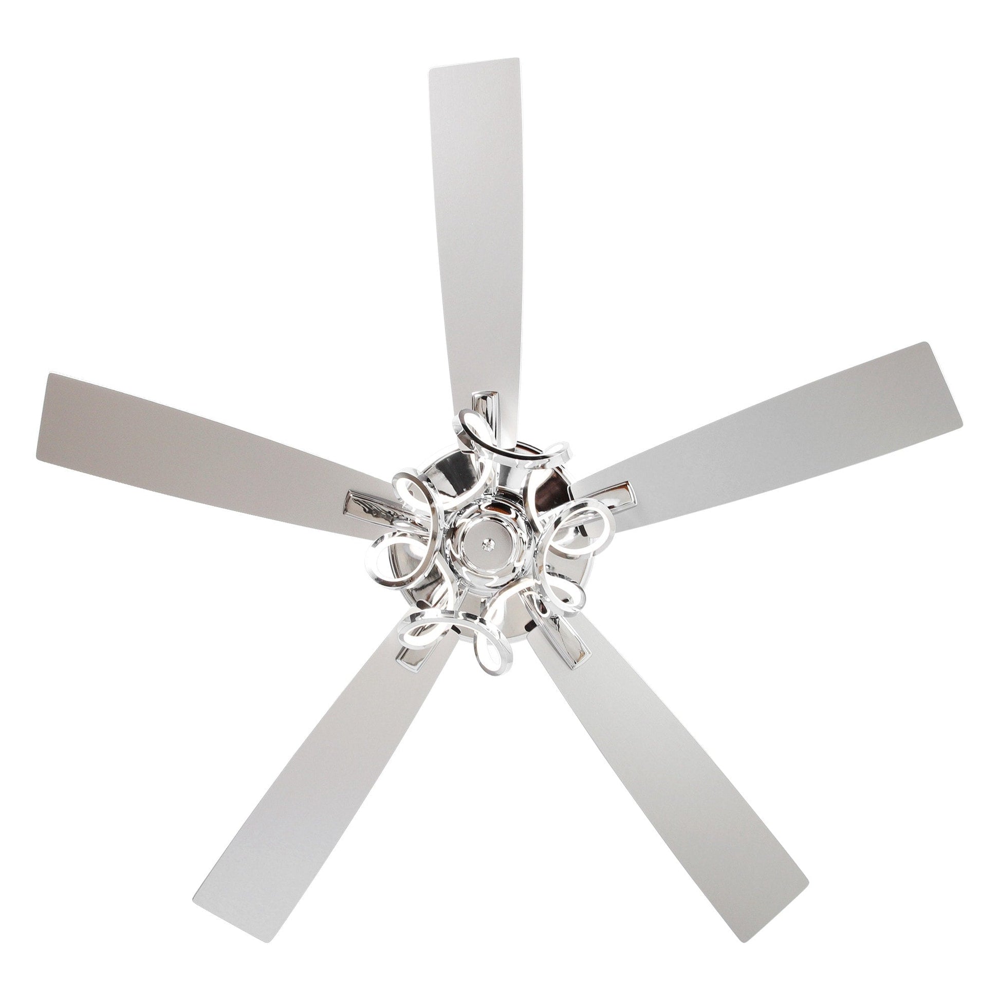 Ventilatore da soffitto a LED dimmerabile da interno da 52 pollici, cromato/nero, con luce e telecomando.