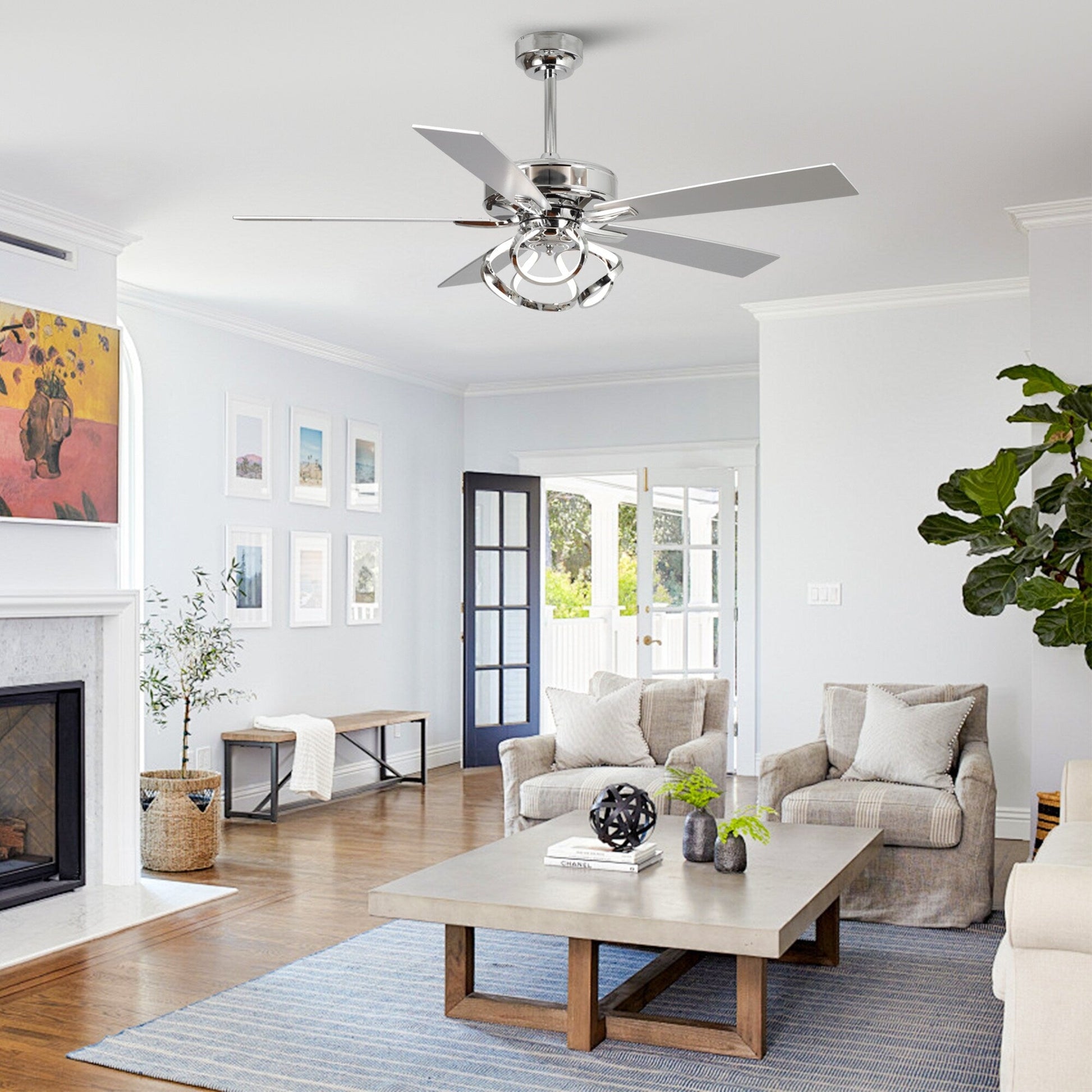 Rinnovate la vostra casa con questo ventilatore da soffitto a LED cromato da 52 pollici con luce e telecomando, progettato per combinare uno stile elegante con un comfort per tutto l'anno. La struttura presenta una striscia luminosa a LED integrata con un esclusivo motivo a spirale, che unisce arte moderna e funzionalità quotidiana. Cinque pale reversibili in argento e marrone scuro offrono uno stile versatile, mentre il silenzioso motore DC a 6 velocità fornisce un flusso d'aria potente fino a 3920 CFM. La luce LED integrata da 24 W offre tre temperature di colore (3000K/4000K/6000K) con luminosità dimmerabile, offrendo il controllo completo dell'atmosfera della stanza. Un comodo telecomando consente di regolare facilmente velocità, illuminazione e modalità inversa per un comfort per tutto l'anno. Perfetto per soggiorni, camere da letto o spazi a pianta aperta, questo ventilatore si integra senza sforzo con arredamenti in stile farmhouse, transitional e contemporaneo.