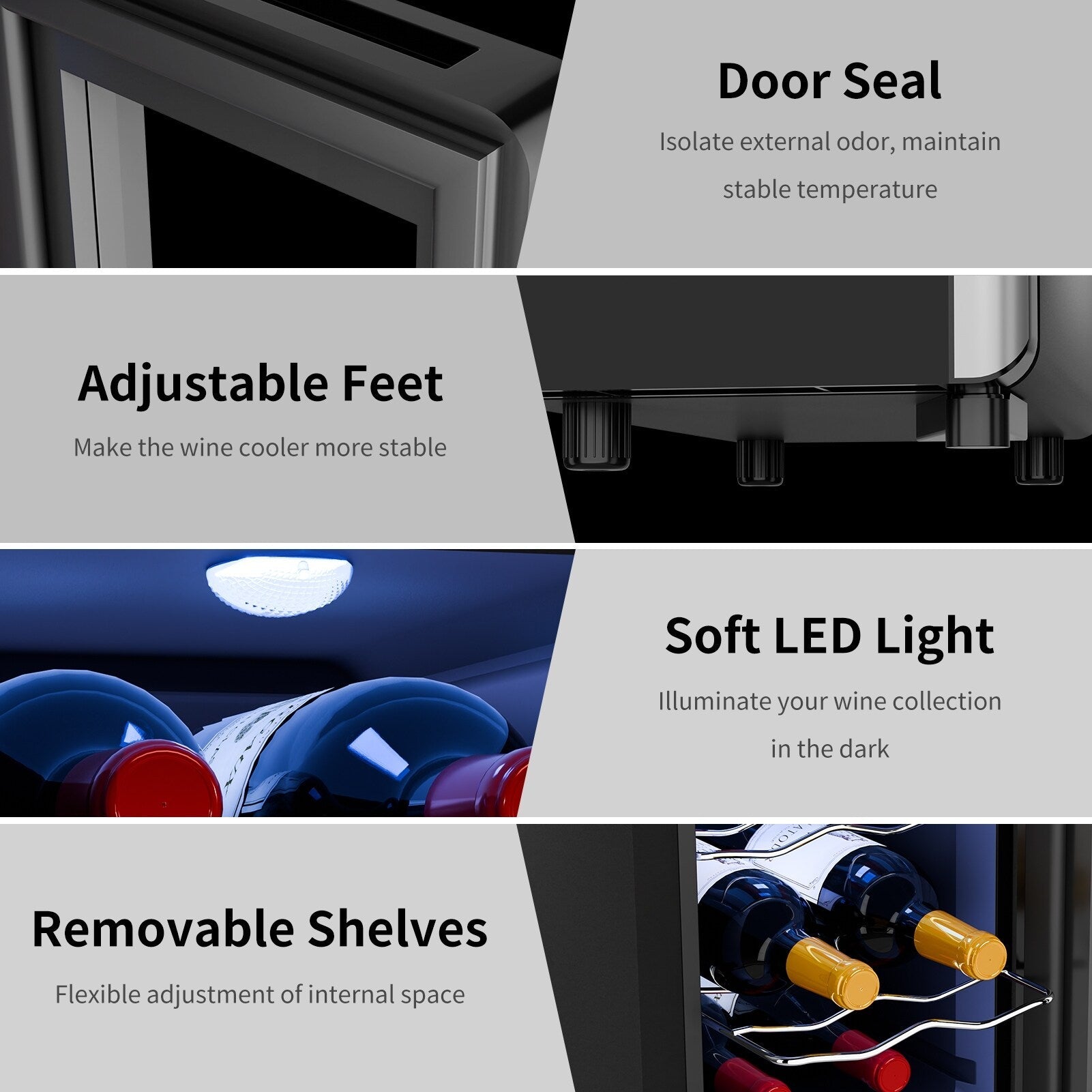 Piedini regolabili: questi piedini migliorano la stabilità del refrigeratore per vino, consentendo di posizionarlo su superfici irregolari senza che traballi.