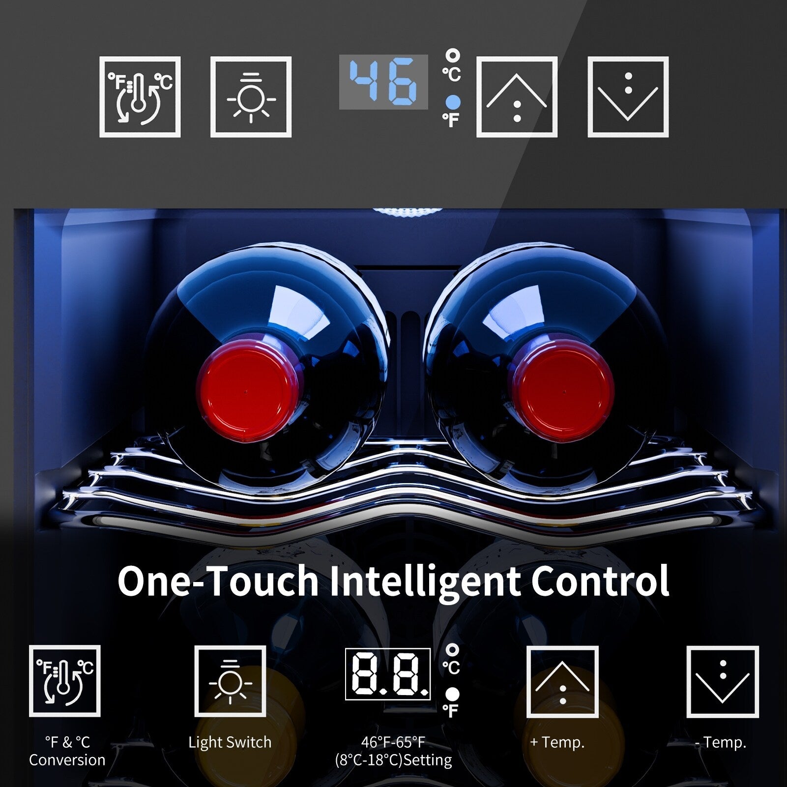 Controllo intelligente a un tocco: il display touchscreen intuitivo consente un funzionamento semplice. È possibile regolare la temperatura nell'intervallo di 8-18 °C (46-65 °F), accendere o spegnere la luce LED e persino convertire tra Fahrenheit e Celsius con pochi tocchi.