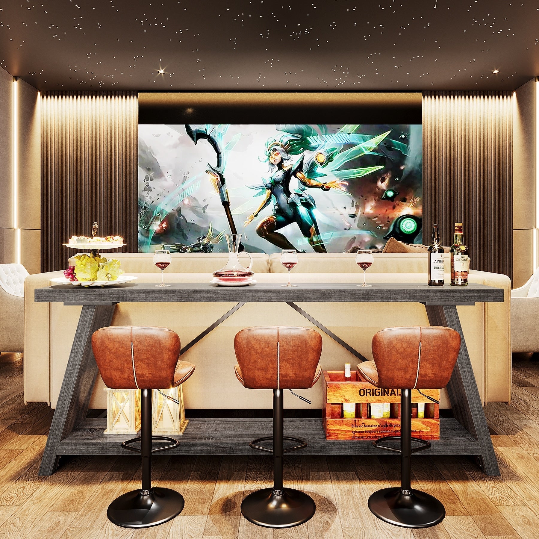 Tavolo da divano in legno rustico lungo 70,9 pollici con ripiano portaoggetti