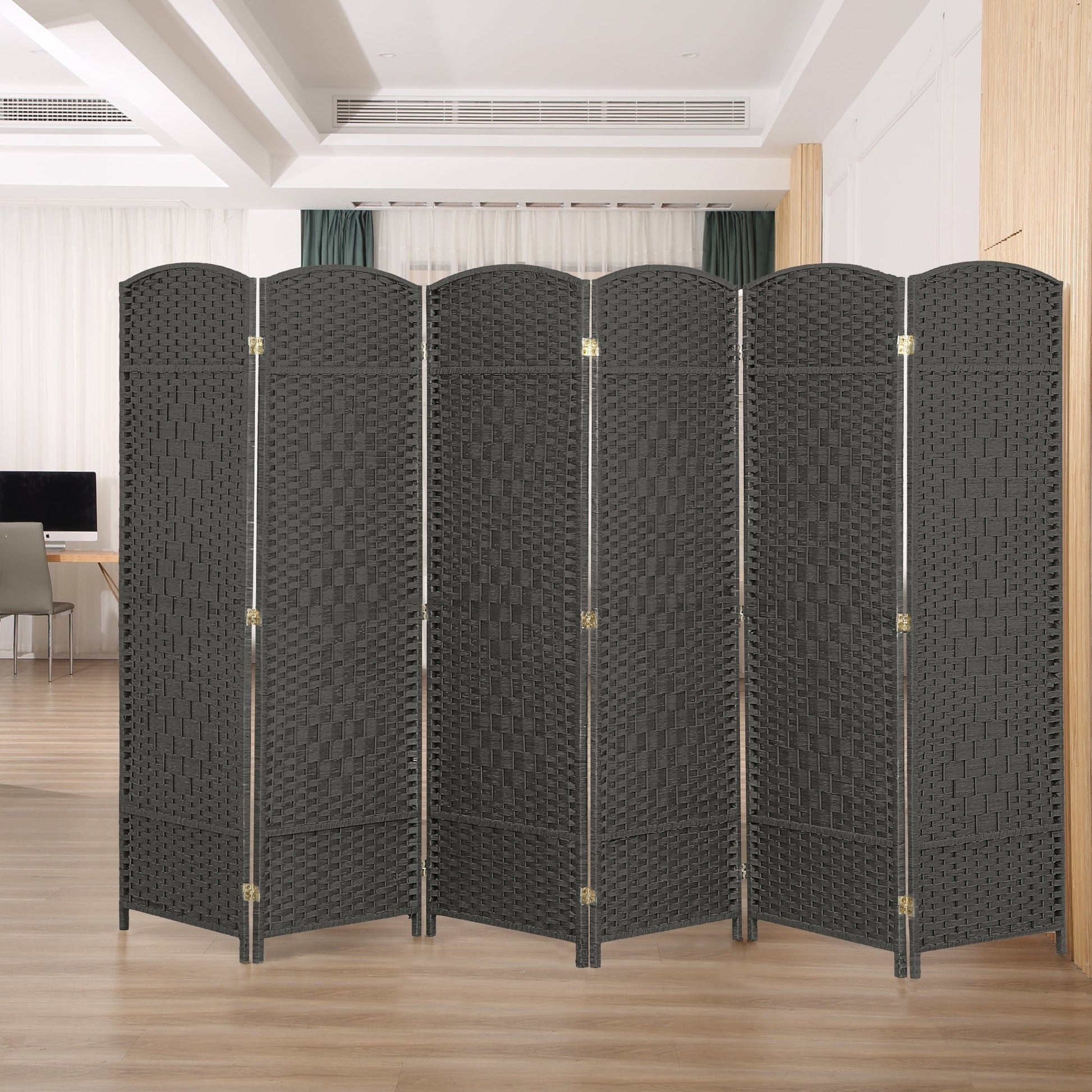 Paravento divisorio per ambienti, alto 180 cm, in fibra intrecciata, a pannelli pieghevoli, autoportante.