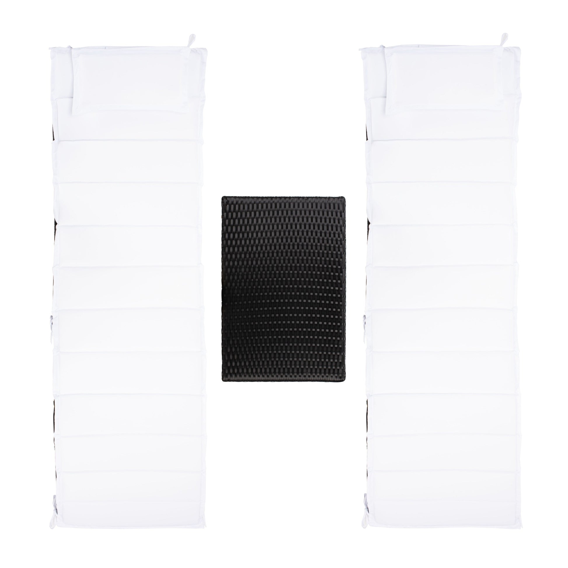 Concedetevi un momento di puro relax al sole estivo con questo set da lettino da giardino composto da 3 pezzi. Le sagome allungate e morbide delle due sedie in rattan PE di Carew sono perfette, completate da comodi cuscini bianchi per il massimo relax, e un tavolino laterale coordinato è ideale per appoggiare bevande colorate o frutta fresca.