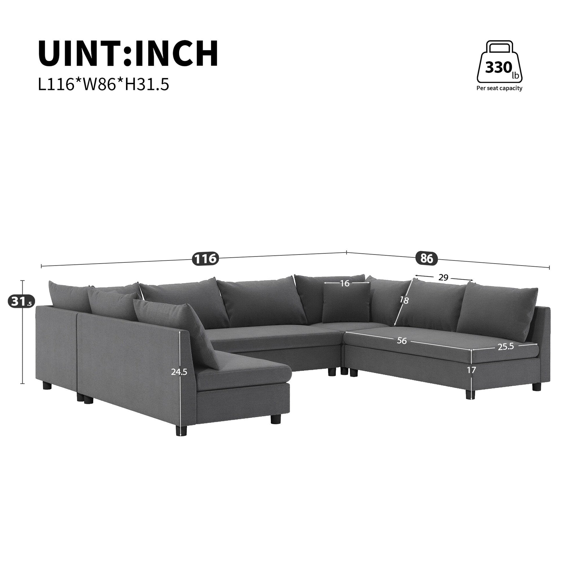 Design personalizzabile e modulare: Il divano modulare a U offre una versatilità impareggiabile. È composto da sezioni indipendenti che possono essere disposte e riconfigurate per adattarsi a qualsiasi spazio o disposizione di sedute. Che si tratti di una grande area salotto per un ritrovo di famiglia o di una configurazione più compatta per una stanza più piccola, il design modulare consente di adattare la disposizione alle proprie esigenze e preferenze.